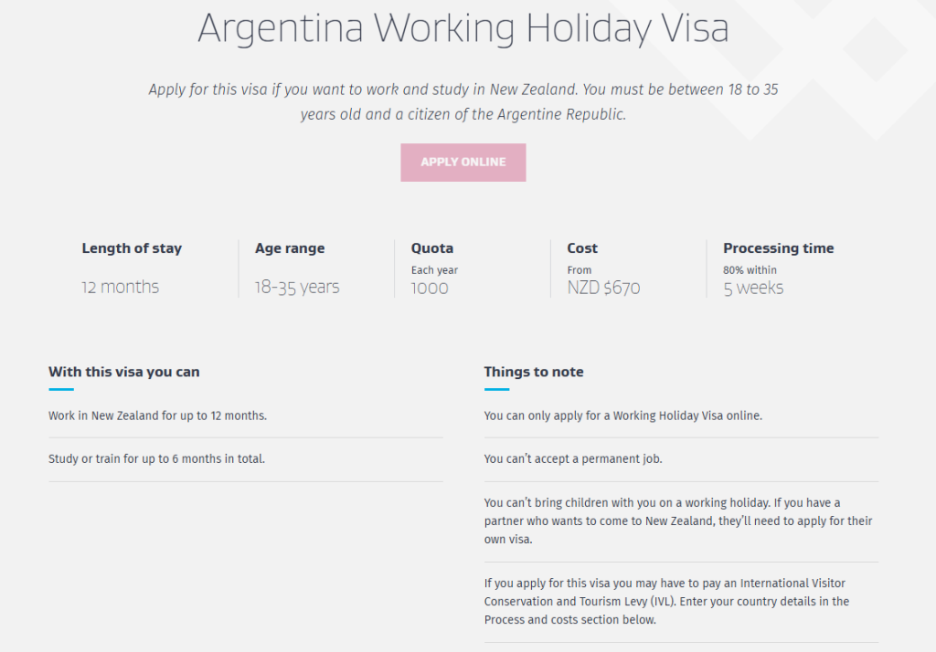 - Nueva Zelanda solo ofrece 1000 Working Holiday Visas anuales para personas de nacionalidad argentina.
